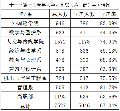 88858cc永利十一季第一期青年大学习各院(系、部)学习情况公示