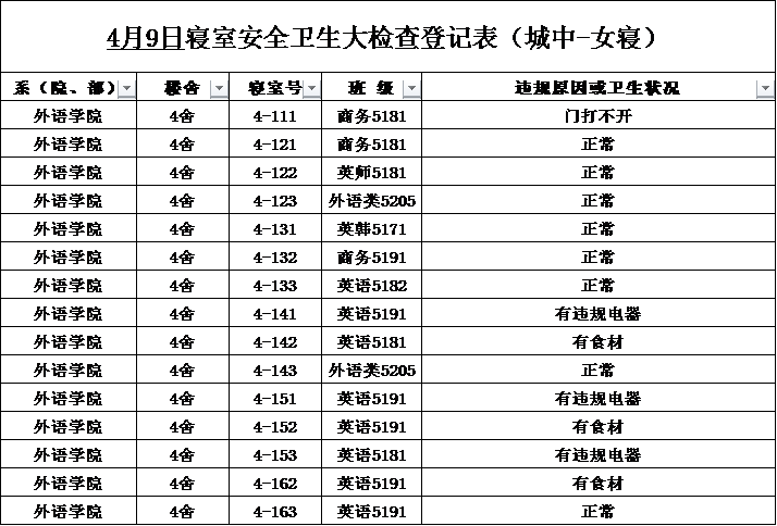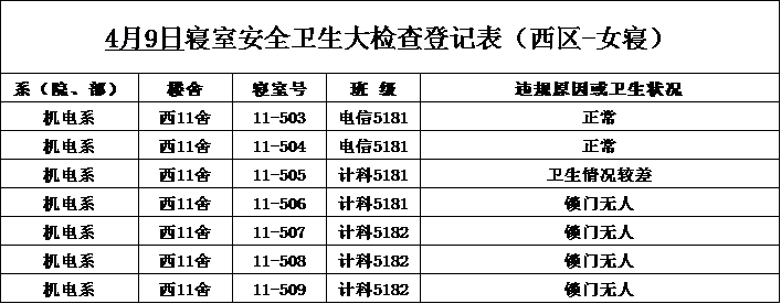 2020-2021学年第二学期第6周寝室检查结果通报