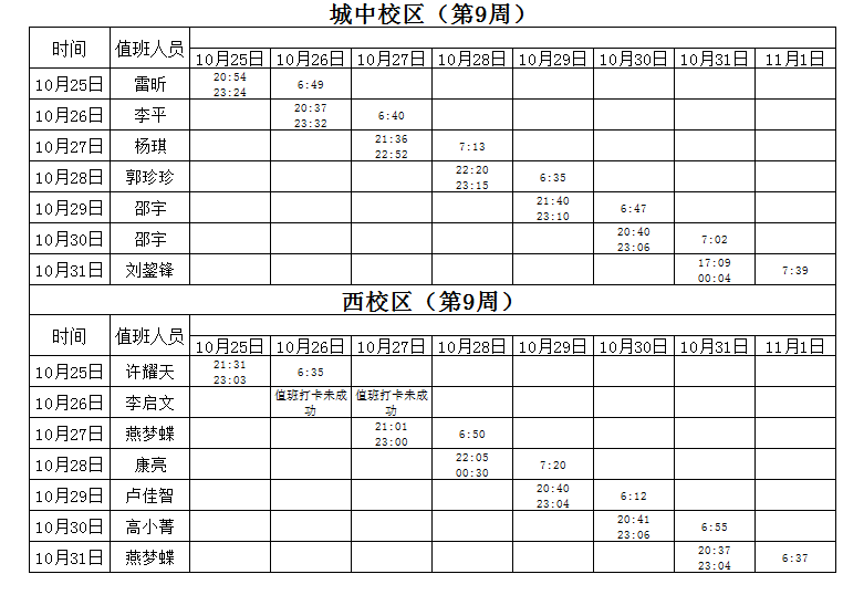 2021-2022学年第1学期第9周学工人员寝室值班通报
