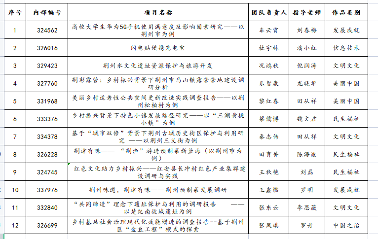 根据《关于组织开展湖北省第十四届“挑战杯·中国银行”老员工课外学术科技作品竞赛的通知》要求及校赛相关工作部署,经员工申报、教学单位审核推荐、专家组综合评审(盲审)等环节,拟推荐《基于“城市双修”背景下荆州古城历史街区保护与利用研究 ——以荆州三义街为例》等12件作品参加湖北省第十四届“挑战杯·中国银行”老员工课外学术科技作品竞赛省赛。现将拟推荐作品予以公示,名单如下: