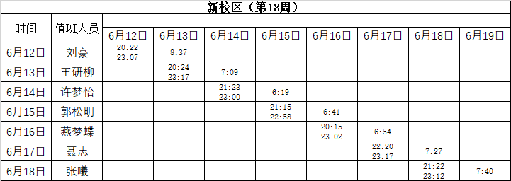 2022-2023学年第二学期第18周学工人员寝室值班通报