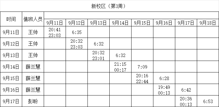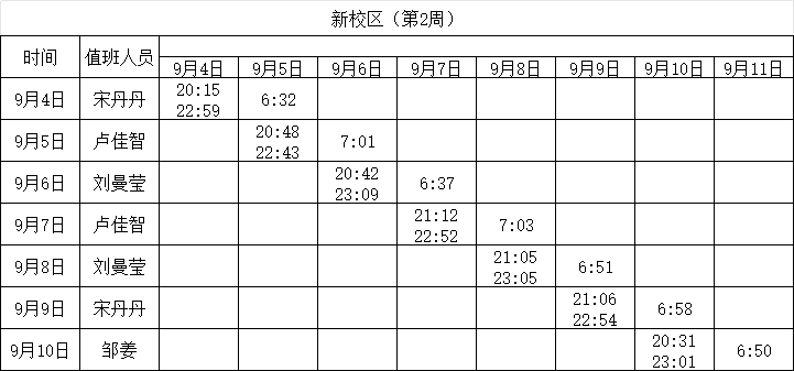 2023-2024学年第一学期第2-3周学工人员寝室值班通报