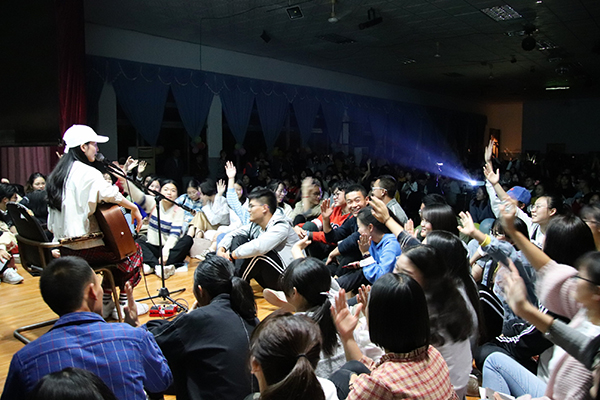 本网讯(员工记者 满盟 见习记者 谷欣格 唐昊)11月3日晚上7点,“大冰的小屋”百城百校音乐会走进公司。500余名喜爱大冰的同学在城中校区工会三楼参加活动。