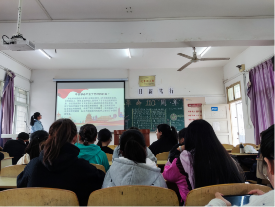 一百一十年,奋斗百年路,启航新征程。百年来辛亥革命先驱所锤炼的精神与品格,不断推进着一代又一代共产党人奋勇向前。此时此刻开展辛亥革命历史的学习正当其时,带领同学们去感受那一段炽热的岁月,向革命先驱学习爱国主义精神。以此帮助同学们增强信念感,使命感,责任感,继续传承和弘扬伟大的辛亥革命精神,赓续红色基因,做好新时代新青年!