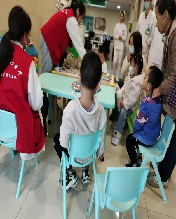 志愿者们早早抵达医院,经过岗前培训后,她们迅速投入各自岗位。部分志愿者在医院导诊台坚守岗位,为前来就医的患者及家属提供引导服务,协助患者进行挂号、缴费,她们耐心解答患者的疑问,用热情周到的服务为患者就医提供便利。与此同时,在儿童病房的志愿者们策划了一场以“小手扭扭乐园”为主题的趣味活动,她们用色彩鲜艳的扭扭棒和生动有趣的绘本故事,充分调动小朋友的想象力和创造性,有效缓解了他们的就医紧张情绪。