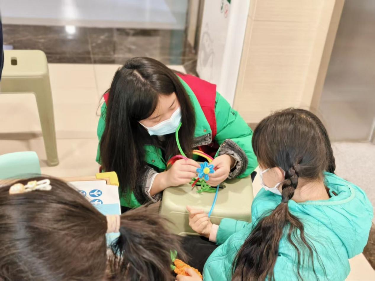 一场志愿服务,两处爱心接力。志愿者们用专业与热情,在医院的不同角落书写着温暖故事,既为患病儿童的康复之路注入了欢乐与勇气,也为就诊群众的就医之旅扫清了障碍。这份双向奔赴的善意,正让医院成为充满爱与温暖的治愈之地。(摄影 孟星彤)
