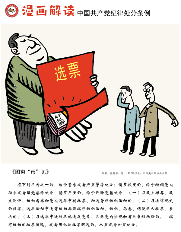 编者按:纪律是我们党的生命线,加强纪律建设是全面从严治党的治本之策。为深入贯彻落实十九届中央纪委四次全会关于加强党纪国法教育的部署要求,强化党规党纪的学习宣传、贯彻执行,使铁的纪律真正转化为党员干部的日常习惯和自觉遵循,中央纪委国家监委网站联合河北省纪委监委,以漫画形式对《中国共产党纪律处分条例》进行解读,陆续连载刊发,敬请关注。