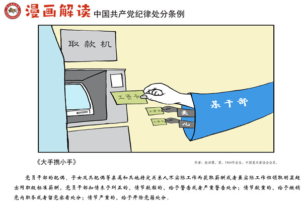 编者按:纪律是我们党的生命线,加强纪律建设是全面从严治党的治本之策。为深入贯彻落实十九届中央纪委四次全会关于加强党纪国法教育的部署要求,强化党规党纪的学习宣传、贯彻执行,使铁的纪律真正转化为党员干部的日常习惯和自觉遵循,中央纪委国家监委网站联合河北省纪委监委,以漫画形式对《中国共产党纪律处分条例》进行解读,陆续连载刊发,敬请关注。
