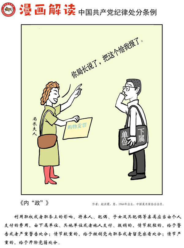 编者按:纪律是我们党的生命线,加强纪律建设是全面从严治党的治本之策。为深入贯彻落实十九届中央纪委四次全会关于加强党纪国法教育的部署要求,强化党规党纪的学习宣传、贯彻执行,使铁的纪律真正转化为党员干部的日常习惯和自觉遵循,中央纪委国家监委网站联合河北省纪委监委,以漫画形式对《中国共产党纪律处分条例》进行解读,陆续连载刊发,敬请关注。