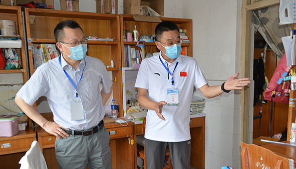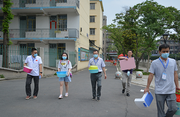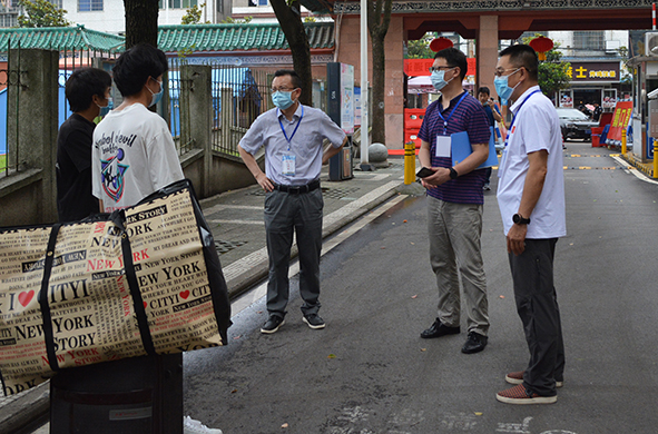 王文凯(后排左三)、朱继平(后排左一)、孙细望(后排右一)帮员工搬行李 询问员工毕业手续办理情况 深入员工宿舍检查 本网讯今天(6月15日)上午,经理王文凯、党委书记朱继平、党委副书记孙细望来到毕业生返校工作现场,查看了毕业生返校报到处体温检测、资格核验等设施,询问毕生手续办理流程和员工、家长及工作人员用餐准备情况,深入员工宿舍看望毕业生,并对返校员工管理、防疫安全、服务保障等方面提出了指导性建议。(记者 吴秀丽摄影报道)