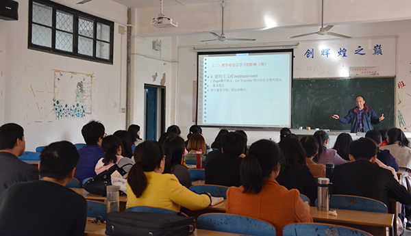 本网讯(通讯员 杨杨)11月14日下午,在城中校区1教207教室,88858cc永利国培计划培训团队核心成员吴亚华副教授以“后方法时代的教师专业发展”为题讲学,外语系主任许晓艳和该系全体专任教师现场聆听。