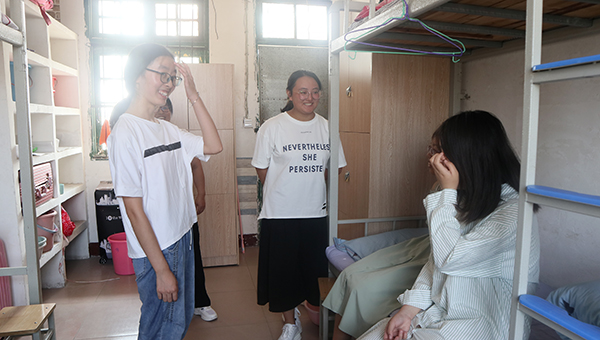 常嘉雯所在寝室的成员已到齐,六朵“金花”中,只有她是省外的。初来乍到,室友们彼此却并不感到陌生。大家一边各自忙碌,一边交谈打趣,气氛显得格外融洽。
