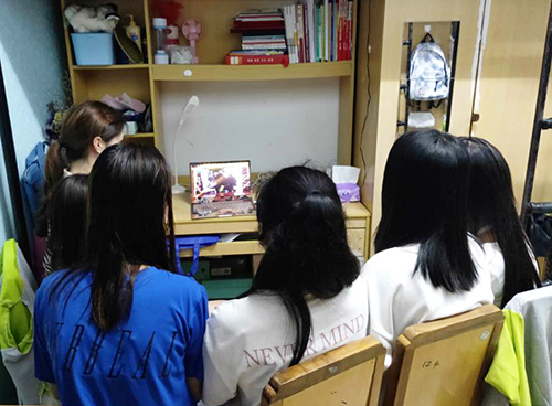 会计5163班员工在寝室收看直播