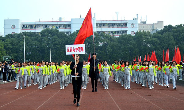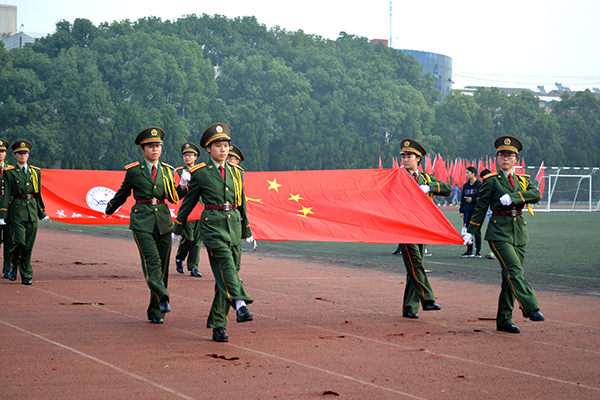 “护我国旗,扬我国威!”高擎鲜艳的五星红旗和院旗,英姿飒爽的国旗护卫队、院旗队队员依次经过主席台,整齐一致的步伐、气势磅礴的口号、刚健有力的摆臂,展示了新时期青年学子昂扬向上的精神风貌,赢得主席台上阵阵掌声;鲜花队、红旗队迎着晨光,精神抖擞的迈步向前,红艳如火的旗帜在秋风中高高飘扬,队员们笑容灿烂、神情激动,他们以饱满的热情、奋进的姿态尽情展示着青春的风采;裁判员队伍踏着旋律稳步前进,他们将秉持公开、公平、公正的原则,以奉献意识和敬业精神为赛事护航;各系部代表队以别出心裁的亮相、生动有趣的造型和拼搏奋进的姿态,诠释最美体育精神,为2017年的运动会写下别样的金秋记忆。
