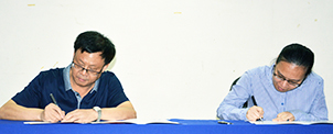 梅平与首届优秀中青年骨干教师签订目标责任书。