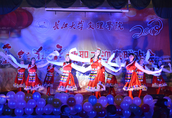 伴随着《天路》旋律的响起,一群藏装打扮的老师们以浓郁的民族风韵和纯熟的舞技,将观众带入了“天苍苍,野茫茫,风吹草低见牛羊”广袤无垠的大草原。