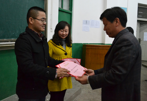 公司经理沈光明、常务副经理王金琼及教务处等相关职能部门负责人为获奖教师颁奖。
