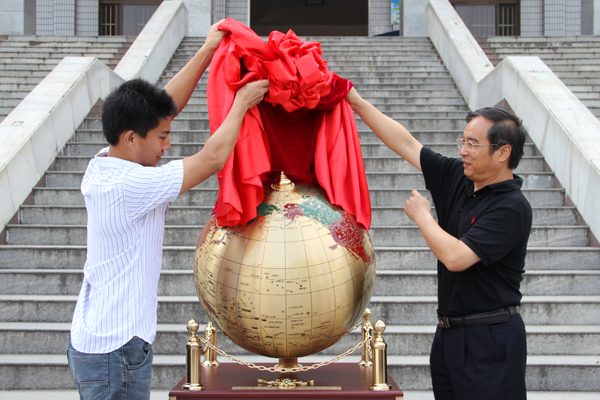 本网讯(员工记者黄志刚)6月13日上午,2012届毕业生向母校赠送地球仪抒发临别的浓情谢意。院领导沈光明、袁先海、王金琼、郭睦庚出席献礼揭幕仪式。