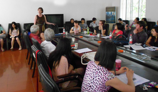 交流会上,朱莉博士和英语专业教师分别就教学方法以及外国文化展开了深入的讨论和交流,面对比较枯燥的理论课,该如何让员工对此产生兴趣?朱莉博士认为,应让员工了解学习这门课的重要性,当员工了解到这种重要性之后,自然会想努力的想学好这门课。双方还就美国的考试制度、作为一名好老师的具体标准等话题进行了深入的交流。