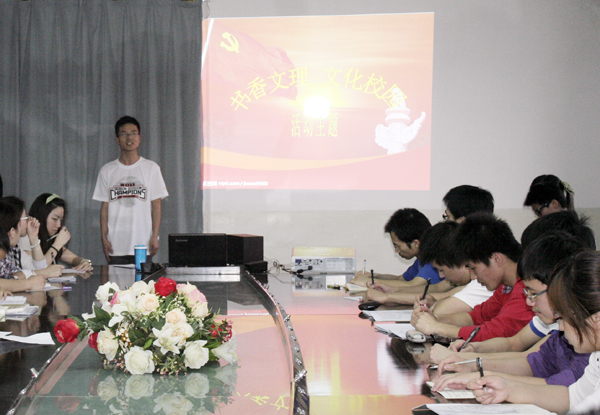 杨雄同学自己制作了精美的幻灯片,图文并茂讲解了长征路线和长征的意义,并向同学们推荐《中国共产党90年创新实录》、《瞿秋白传》、《新民主主义革命简史》等书籍。