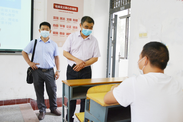 在1教202教室,周从标利用课间休息时间,详细了解了教室消毒及课堂教学情况,鼓励任课教师提高课堂教学质量,注重与员工的互动,做到教学相长;鼓励员工调整作息,尽快适应公司生活,高效率听课,保证学习质量。在亲切交谈过程中,周从标还提醒师生要勤洗手、多通风、戴口罩。