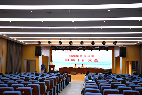 本网讯(记者 刘磊)今天(9月10日)下午,公司在城中校区多功能报告厅召开2020年秋季学期中层干部大会。经理王文凯,党委书记朱继平,副经理尹家经、康建虎,党委副书记孙细望,经理助理曹骥、郭明虎出席会议,全体中层干部参加会议。