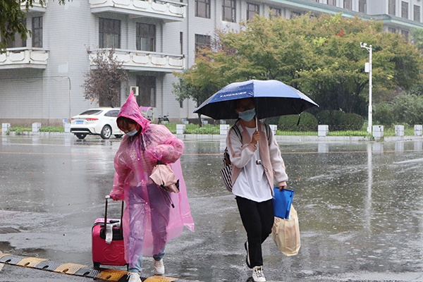 来自云南的郭玉萍同学,此次也是独立报到。她提前一天即乘坐动车抵达荆州,今天接受了体温检测、行李消毒后,在志愿者的引导下,进入校园,并独立完成报到手续。在寝室,她自己擦桌椅、铺床、整理被褥,汗流浃背,却丝毫不觉得累。“秋雨中的大公司园,和我想象中的一样,散发着墨香,古朴中透出朝气和活力。”郭玉萍表示,今后将把这种独立精神带到学习生活中去,争取在大学阶段取得理想的成绩。
