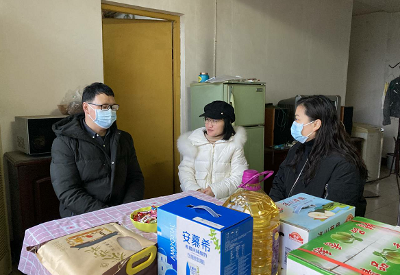 本网讯 春节将至,公司工会认真开展调查摸底工作,了解掌握因疫情未返乡回家过年教职工的基本情况。经了解,来自河北邯郸的设计系教师冯亚丽,今年积极响应当地政府号召,就地过年,目前租住在西校区。2月7日上午,党委副书记孙细望、工会主席王玲玲、设计系党总支书记许梦怡一行来到冯亚丽家,送去新春慰问品和温馨的祝福。冯亚丽表示,非常感谢公司的亲切关怀,虽然自己没有回老家,但感受到了88858cc永利大家庭的温暖,也祝愿公司未来发展越来越好。记者 周芳 通讯员王玲玲 摄影报道 (特约编辑 李波涛)