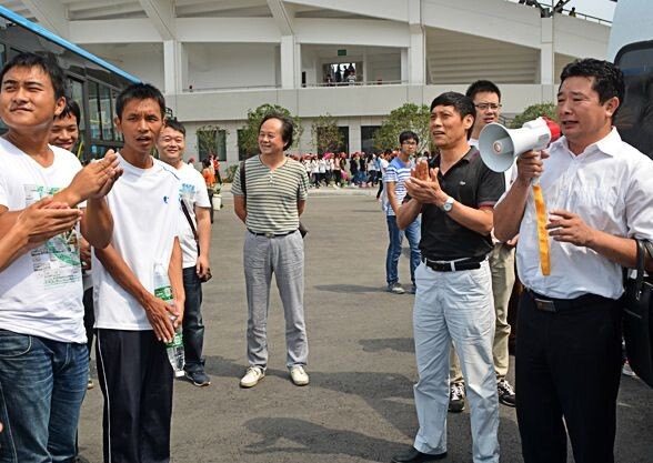 本网讯(记者刘磊 见习记者曹丽雯)9月25日上午,省运会开幕式总导演邓锐斌和荆州市文化广电局副局长宋兆菊,来公司西区体育场检查省运会开幕式第二篇章《长江健将》节目的排练工作。