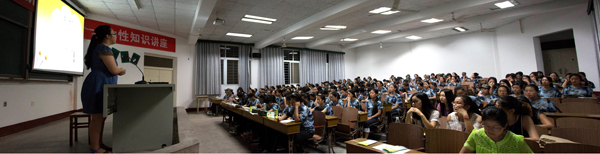 本网讯(见习记者 王抒曼)9月10日晚,一场主题为“美丽青春,如花绽放”女性知识讲座在公司工会大厅举行,2015级医护系和外语系全体女生,现场聆听讲座。