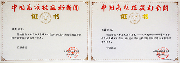 公司2件新闻作品获中国高校校报好新闻奖