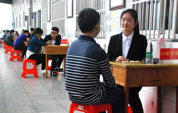 本网讯 5月22日下午,人文与传媒系应用心理学专业33名员工走进荆州市北门中学,以个体咨询和图像排列心理分析的方式,为该校高三员工进行心理压力疏导。